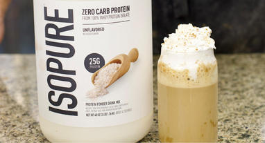 - Whisk in Isopure Low Carb Dutch Chocolate Protein Powder until smooth.